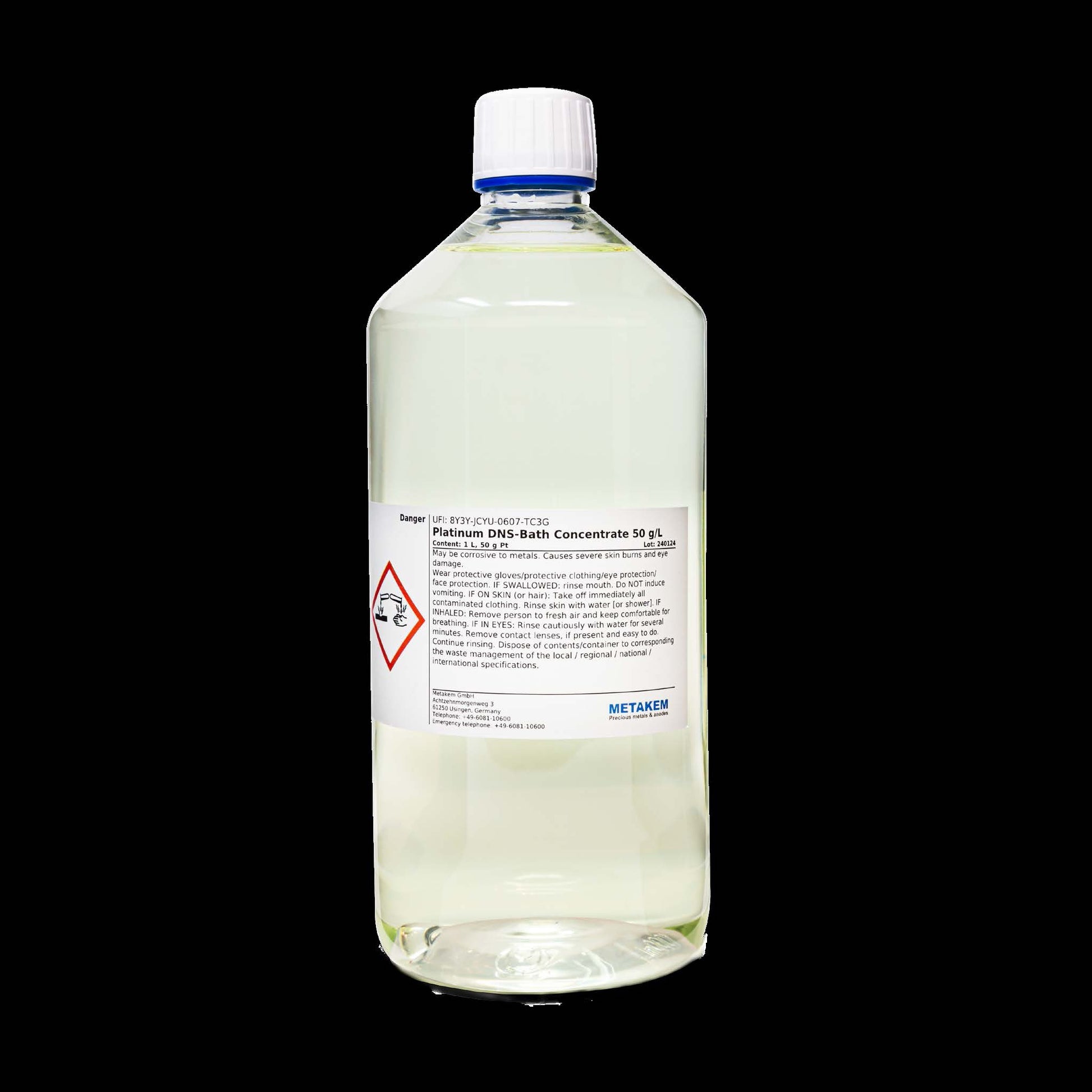 For every 1 g of platinum removed, 20 ml of Platinum DNS Bath R is added to the bath. - The delivered stock concentrate is stirred into approximately three times the amount of deionized water and then topped up to bath volume.